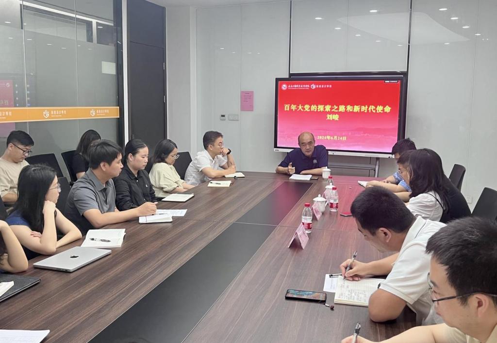 为庆祝建党103周年,大力发扬革命传统,传承红色基因,汲取奋进力量,推动党纪学习教育走深走实,创意设计学院产品时传党支部邀请义乌市政协原副主席刘峻作《百年大党的探索之路和新时代使命》专题党课,支部全体党员参加会议。