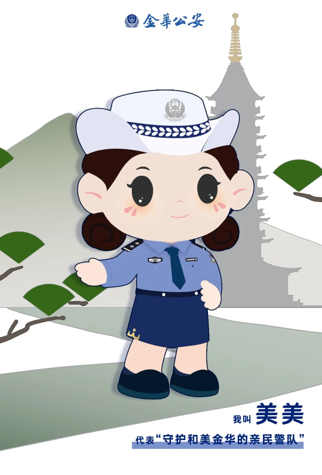 以普警为原型,右手敬礼,牢记对党忠诚;裤脚“浪花”纹样,代表婺江之水,亦指勇立潮头的奋进姿态。