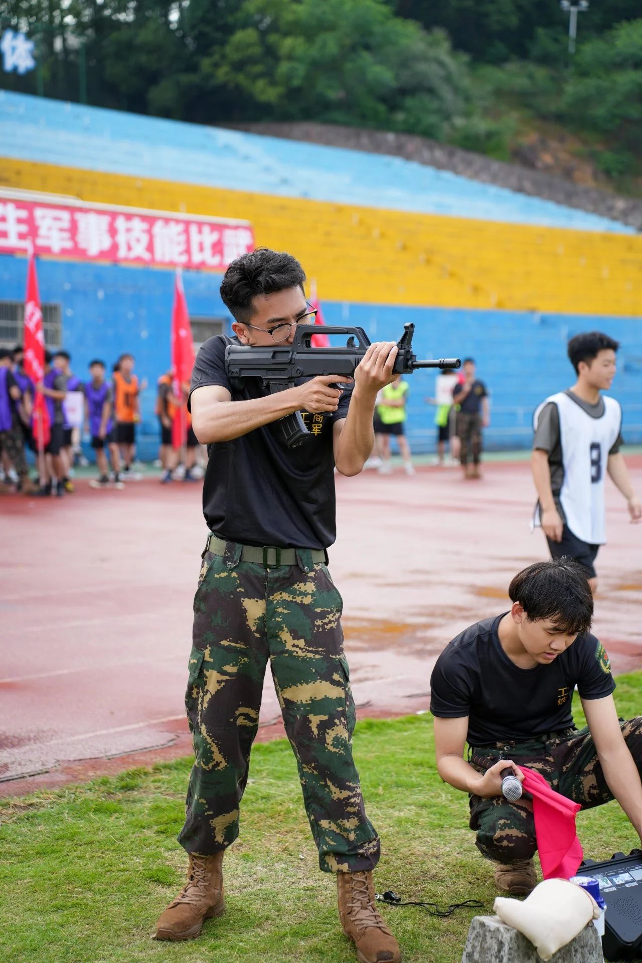 在学校第三届军事技能比武——轻武器模拟射击比赛中,王俊崴作为裁判长,以精准无误的动作向身后的参赛选手们展示着射击的精髓。瞄准、呼气、击发,一气呵成,10环!10环!10环!满环信号频频响起,稳稳命中!尽管如今已脱下戎装,但他精湛的射击技巧和对军事技能的热爱却丝毫未减。他深知,射击与军事技能不仅仅是战场上的利器,更是培养意志、锻炼体魄、提升团队协作能力的宝贵财富。他愿意成为一名引路人,将自己在军营中学到的知识与经验无私地传授给每一位热爱军事、渴望成长的同学。