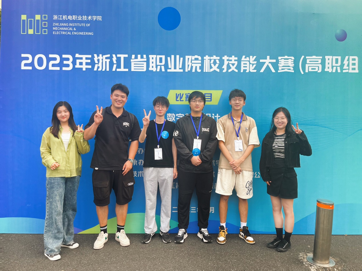 6月21日,2023年浙江省职业院校技能大赛高职组“数字艺术设计”赛项在浙江机电职业技术学院顺利举办,来自全省共25所高职高专院校的25支队伍参加此次比赛。由我校创意设计学院朱清沁老师、俞越老师指导的数字媒体艺术设计专业学生彭程、陈恺一、钱晨亮三位同学,在比赛中沉着冷静应对,团队分工协作,经过8小时激烈角逐,最终荣获三等奖。