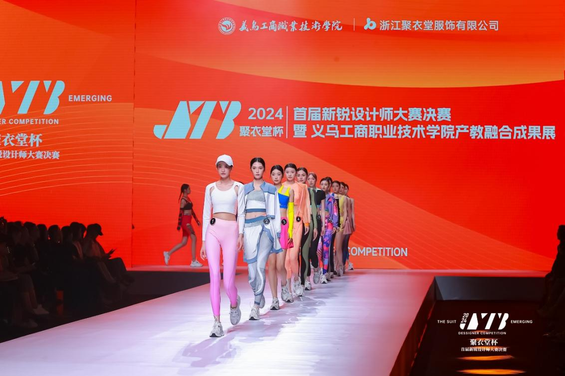 此次展演,不仅展示了来自各所院校选手的40余套决赛作品,而且首次向外界展示了义乌工商职业技术学院创意设计学院服装与服饰设计专业与浙江聚衣堂服饰有限公司联合开展“区域特色学徒人才培养”以来的产教融合人才培养成果——2024届毕业生的70余套瑜伽服作品。00后年轻的设计师们与企业师傅一道,从“商业选题——市场分析——设计改稿——作品选料——样衣制作(修样)——成衣定款”等多个环节,历时近一年,不断修改与打磨作品,最终呈现了从课堂到车间再到商铺的全链式人才实践教学成果。