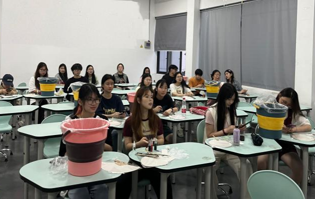 本次活动由学校第八期发展性资助项目相关负责人担任主讲。活动伊始,学生主讲人首先详细介绍了漆扇的历史渊源、制作工艺及艺术价值等。漆扇,作为中国传统工艺品之一,以其独特的艺术风格和精湛的制作工艺闻名于世,蕴含了丰富的文化内涵。其次,主讲人亲自示范了漆扇的制作过程,从上漆到装饰,每一个步骤都讲解得详细而生动。学员们全神贯注地观看,随时提出自己的疑问并深入交流。