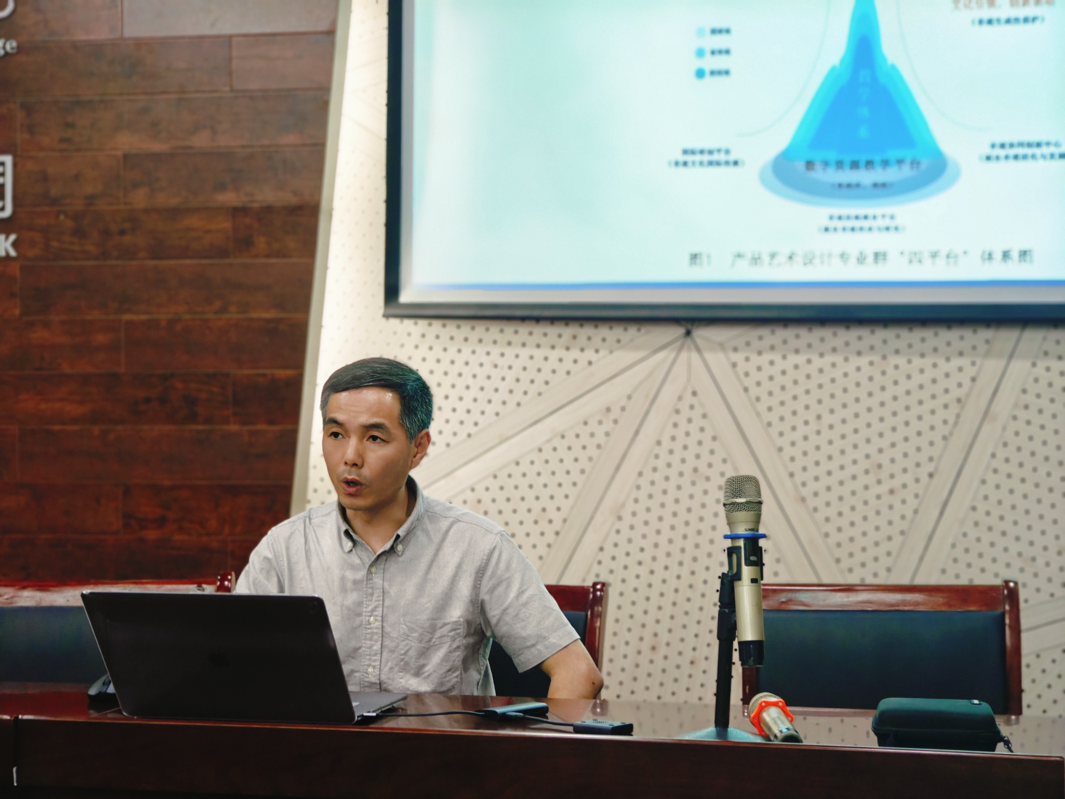 王华杰教授围绕产品设计专业群“一中心四平台”的建群逻辑,深入浅出地阐述了如何通过课程体系优化、学生实践能力提升、教师队伍建设和专业发展等多个层面,推动教学质量的螺旋式上升。他强调,基于8字螺旋(即“目标-执行-评估-改进”的循环)的教学诊断与改进机制,是实现教育高质量发展的关键。