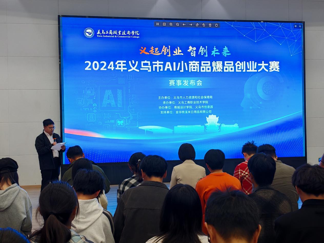 大赛由义乌市人力资源和社会保障局主办,义乌工商职业技术学院创意设计学院承办,商城设计学院、义乌市创意园协办,为义乌市2024年义乌市“义起创业 智创未来”创业大赛的系列赛事之一。大赛旨在构建一个集创意、设计、创业于一体的平台,吸引更多创业者、设计师和高校学生关注义乌市小商品市场的发展,并利用人工智能技术创造更多具有市场竞争力的爆品。大赛的主题“义起创业 智创未来”凸显了创业与创新的核心价值。