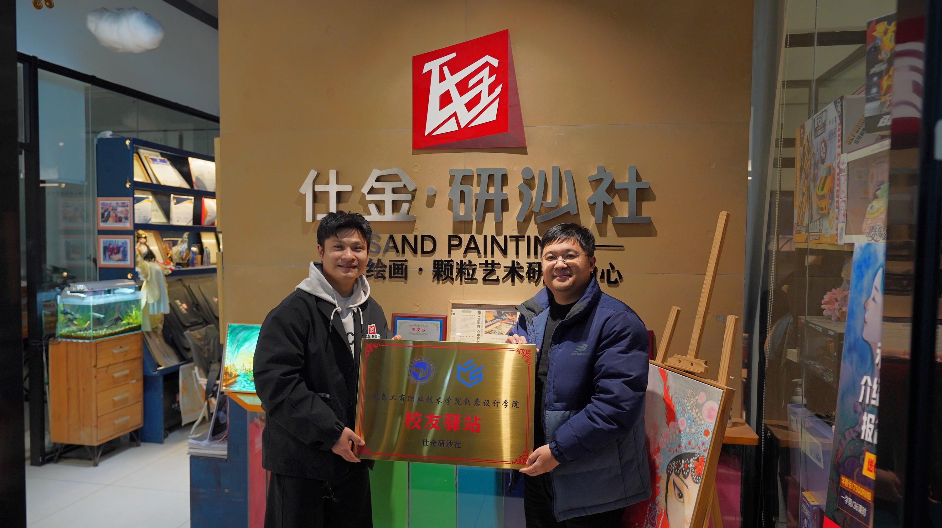 2024年12月19日,创意设计学院党委负责人带领学工办老师、团委学生干部一行十余人前往2012届优秀校友何仕金创办企业仕金·研沙社,举行了“校友驿站”授牌仪式。此次合作标志着创意设计学院校友分会在校外建立了一个校友资源共享、交流学习的新平台,为校友未来发展注入强大动力。