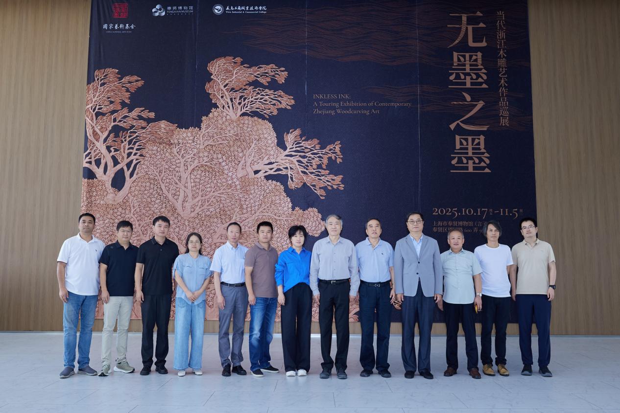 以木为纸,以刀代笔。近日,国家艺术基金2025年度传播交流推广资助项目“无墨之墨:当代浙江木雕艺术作品巡展”在上海奉贤博物馆言子书院拉开帷幕,121件出自20位浙江木雕大师之手的精品力作集中亮相,为沪上观众带来一场传统与创新交融的艺术盛宴。