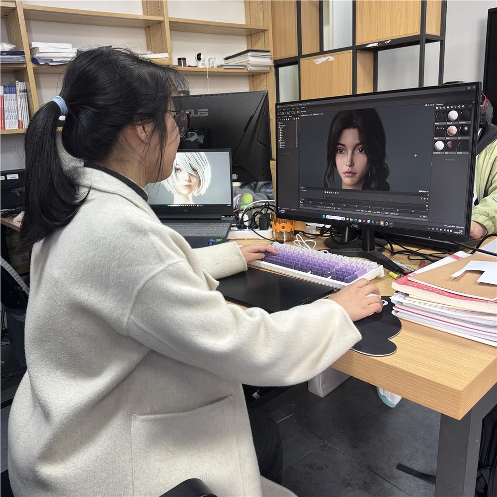 从课堂到赛场,从技术钻研到文化传播,如今,这个曾经的建模新手,已能在十分钟内完成一个人物绑定,成为团队信赖的技术骨干。但王卓仪依然常常待在工作室,有时钻研新技术,有时辅导学弟学妹。屏幕里的虚拟世界愈发精致生动,屏幕外的成长轨迹也愈发清晰坚实——每一步,都建立在多边形般精准的规划与如拓扑结构般扎实的努力之上。相信,在数字化浪潮中,她必将用自己的方式,以“修心、精技、践行”为准则,构建着一个既有技术硬度、又有人文温度的未来。