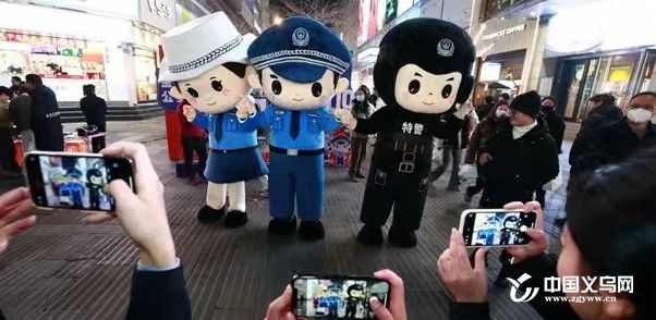 “诚诚Chengcheng以普警为原型,右手敬礼,牢记对党忠诚;裤脚‘浪花’纹样,代表婺江之水,亦指勇立潮头的奋进姿态……”1月10日,在金华市区西市步行街商圈,由义乌市创意园(国家旅游商品研发中心)为金华市公安局设计的巨型动漫IP形象“诚诚”“美美”“威威”街头秀首次亮相婺城,与广大市民开展互动。