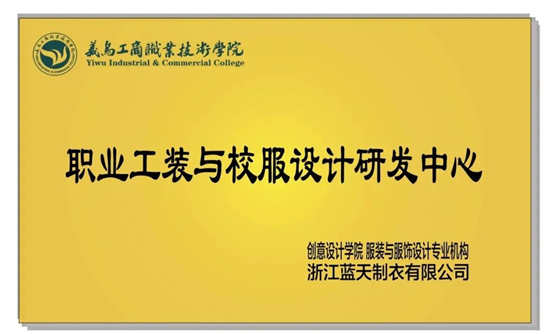 创意设计学院与浙江蓝天制衣有限公司联合成立“职业工装与校服设计研发中心”,中心落成在创意设计学院服装与服饰设计专业机构。